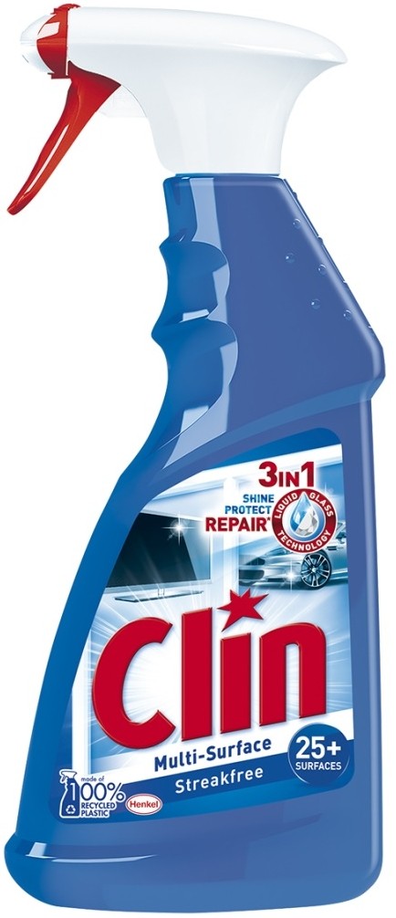 Clin Multi-Shine, univerzální čistič. Rychle a účinně odstraňuje běžné nečistoty z nejrůznějších povrchů – počínaje sklem či plasty a konče ocelí, nebo dokonce kůží. Díky speciální receptuře lze Clin Multi-Shine používat i na choulostivé povrchy, jako je televizní obrazovka, stereo souprava nebo pracovní deska z přírodního dřeva či mramoru.