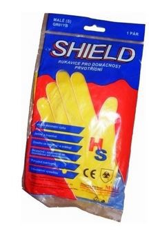 Latexové, anatomicky tvarované úklidové rukavice vyšší třídy, tloušťky 0,4 mm.