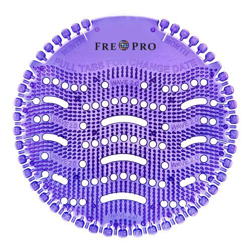 Aromatické a gelové vonné sítko FrePro Wave2 do pisoáru s indikátorem data výměny.Velice příjemná a decentní vůně,Levandule, která je 15x intenzivnější než mají běžná vinylová sítka. Eliminuje pachy a optimizuje tvorbu bakterií, zabraňuje šíření pachů hned v jejich zárodku. Výrobce garantuje plnou účinnost po dobu 30 dnů. Speciálně vyvinutý design zajišťuje rychlejší a účinnější splachování obsahu pisoáru, mísa se průběžně čistí. Úspora času pro úklid až 50%. Transparentní design umožňuje průběžnou kontrolu stavu odpadních cest, účinněji brání ucpávání. V procesu působení sítko uvolňuje účinné bakterie– pohlcovače pachů a vonné látky, proto se mírně smršťuje. Kulatý tvar umožňuje umístění do každého typu pisoáru. Neobsahuje žádné látky poškozující ozon, ani žádné látky ohrožující lidské zdraví. Delší bodlinky účinněji zabraňují rozstřikávání moči, usnadňují očistu pisoáru a uvolňují více vůně do prostoru. Sítko se vkládá do pisoáru bodlinkami nahoru.