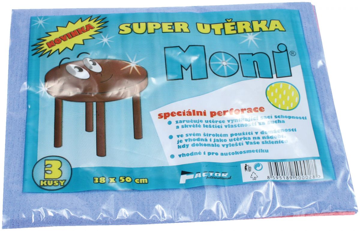 Speciální perforace zaručuje vynikající sací schopnost a skvělé leštící vlastnosti za sucha. Vhodné i jako utěrka na nádobí, dokonale vyleští sklenice, okna, zrcadla, a pod. Využití najde i v autokosmetice. Rozměry: 38 x 50 cm. 3 kusy v balení.