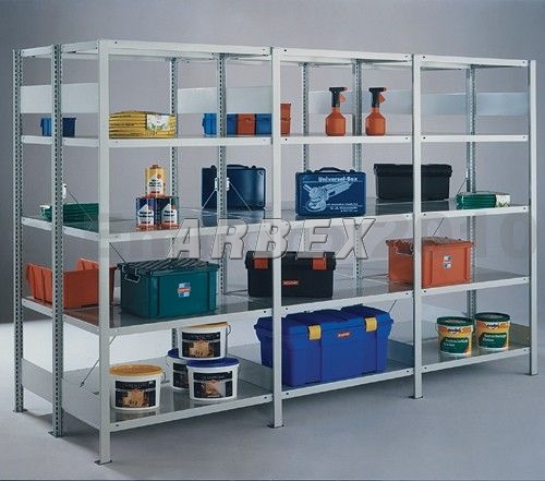 stabilní regály montované zásuvným systémem bez použití šroubových spojů nachází uplatnění zejména ve skladech, dílnách, archivech, prodeních skladech