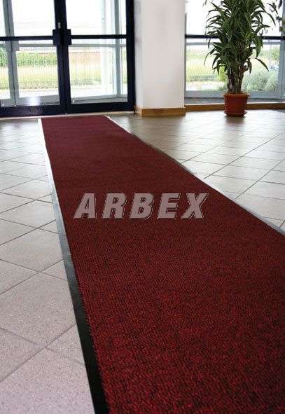 Červená textilní čistící vnitřní vstupní rohož s úpravou proti znečištění a volnému pohybu. Vlas rohože je vyroben ze 100% polypropylénu, spodní část pak z PVC. Rohož se jednoduše udržuje a je možné ji vyčistit vysáváním.