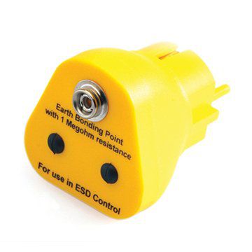 Ideální zemnící bod pro podlahové rohože a personál. Zástrčka je navržena pro standardní EU zásuvku. Zástrčka nemá žádný odpor (ten je integrovaný v uzemňovacích kabelech). Napájecí kolíky jsou elektricky neutrální, vyrobeny z plastu. Uzemňovací kolik je vyroben z kovu pro zaručenou bezpečnost.