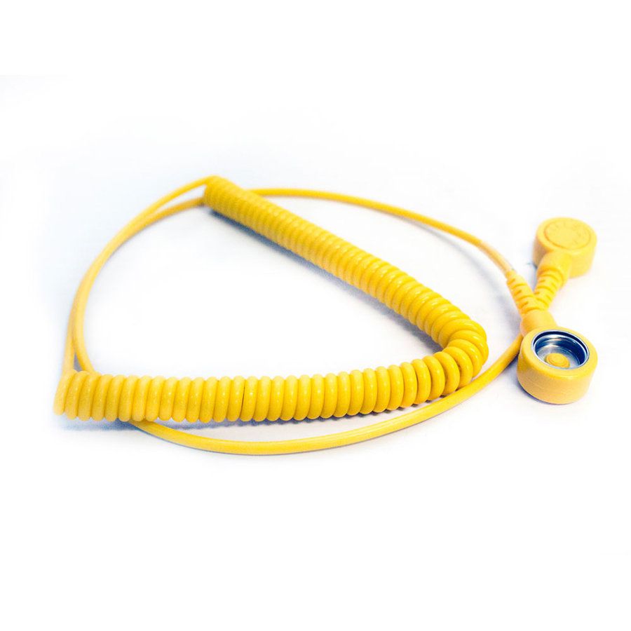 Natahovací uzemňovací kabel s cívkovou pamětí (nezamotává se) pro připojení k antistatickým rohožím. Kabel je na obou koncích vybaven konektorem (samice) pro připojení k rohoži a uzemňovací zástrčce. Kabel je vybaven 1 M Ohm resistorem.