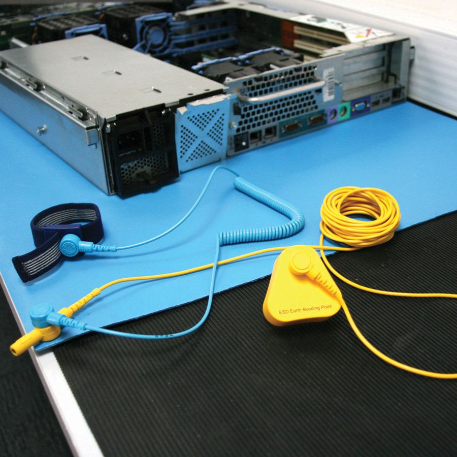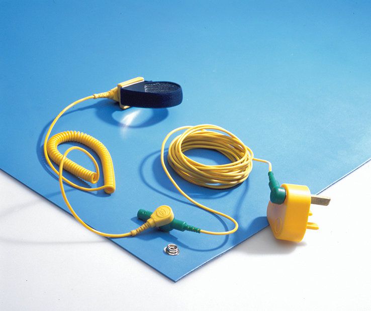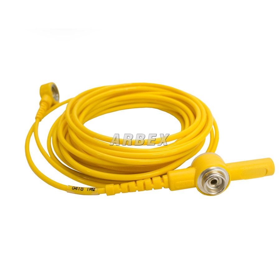Uzemňovací kabel pro připojení k antistatickým rohožím. Kabel je na obou koncích vybaven 10 mm konektorem (samice) pro připojení k rohoži a uzemňovací zástrčce. Na straně k rohoži je navíc vybaven 10 mm konektorem (samec) a 4 mm banánkem (samice) pro připojení pracovníka.