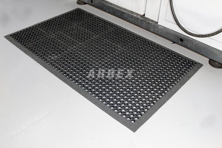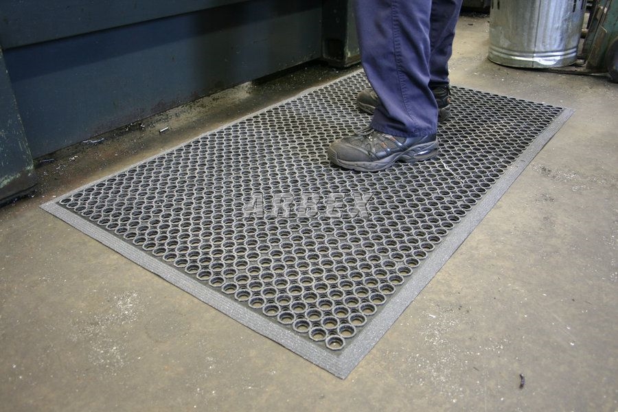 Průmyslová rohož vyrobená ze 100% nitrilové směsi. Pohodlný povrch rohože zmírňuje únavu způsobenou dlouhým stáním a také zajišťuje tepelnou izolaci. Povrchová úprava z karbid silikonu zabraňuje uklouznutí. Zkosené hrany rohože zabraňují zakopnutí. Otevřená struktura rohože umožňuje volný odtok tekutin.