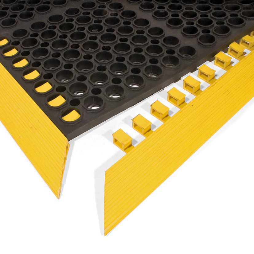 Žlutá gumová náběhová hrana COBA Deluxe pro bezpečný a pohodlný přístup na schody nebo protiúnavové rohože. protiskluzový povrch zvyšuje bezpečnost práce a minimalizuje riziko uklouznutí. vhodná pro použití v interiéru i exteriéru, odolná proti vlhkosti, nečistotám a běžnému opotřebení.