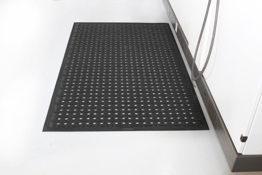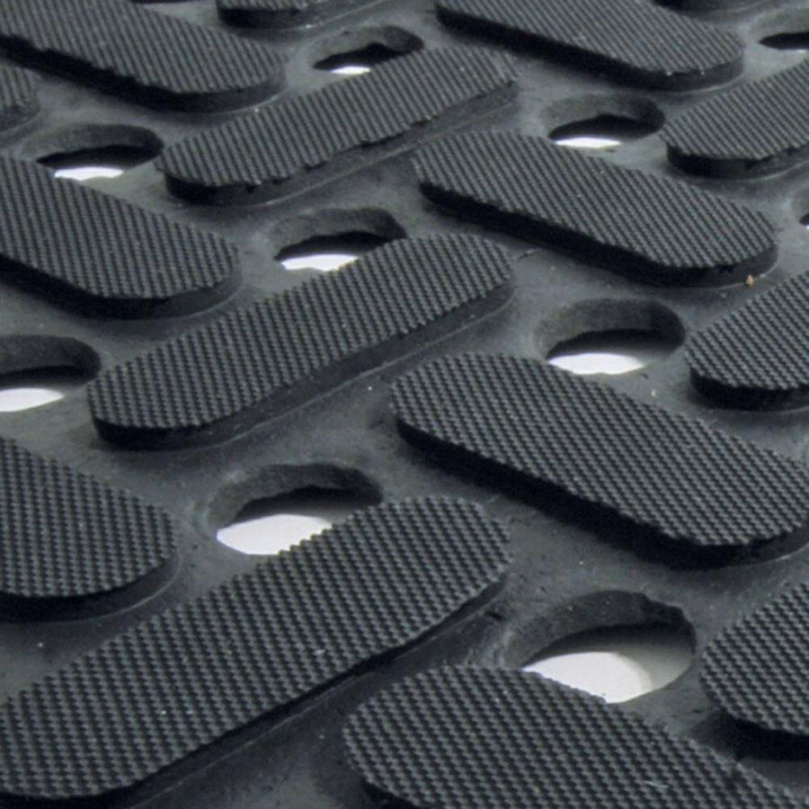 Rohož vyrobená ze 100 % nitrilové gumy. Otevřená struktura rohože zajišťuje volný odtok tekutin a povrch takto zůstává suchý.