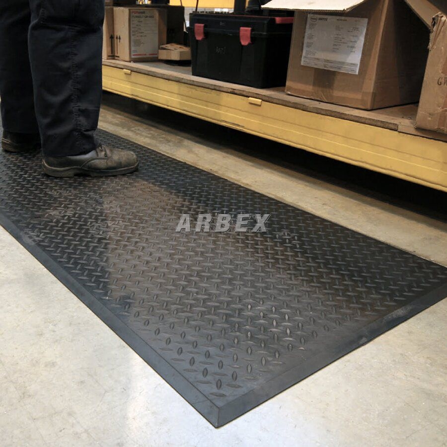 Rohož vyrobená z odolné směsi SBR a nitrilové gumy. Díky své výšce a struktuře rohož zmírňuje únavu při dlouhém stání.