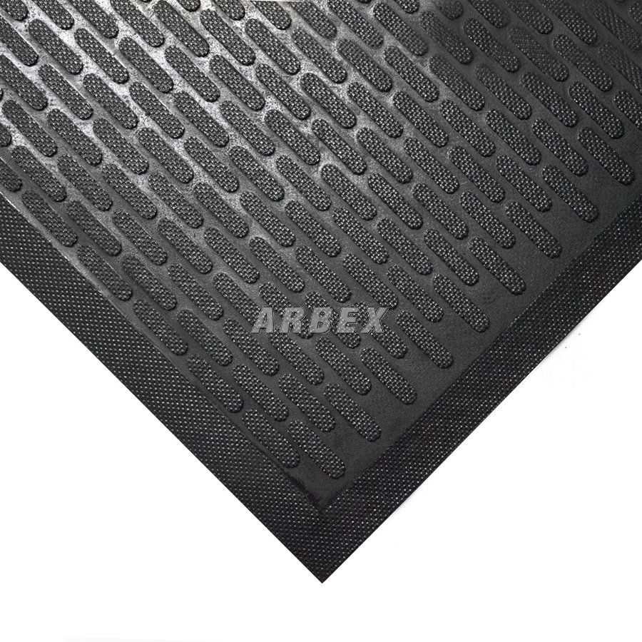 Zvýšený povrch s protiskluzovým vzorem poskytuje pevný povrch pod nohami v mokrých i mastných prostředích. Rohož je po okrajích lemována bezpečnostní náběhovou hranou.