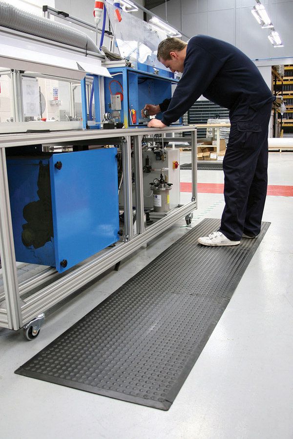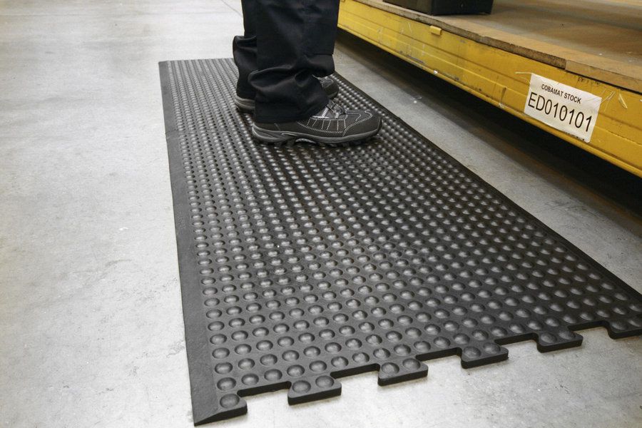Rohož je vyráběná ze směsi přírodní a nitrilové gumy. Bublinkový povrch stimuluje krevní oběh v chodidlech, nohách a celém těle. Rohož izoluje pracovníky od chladu z betonových podlah.