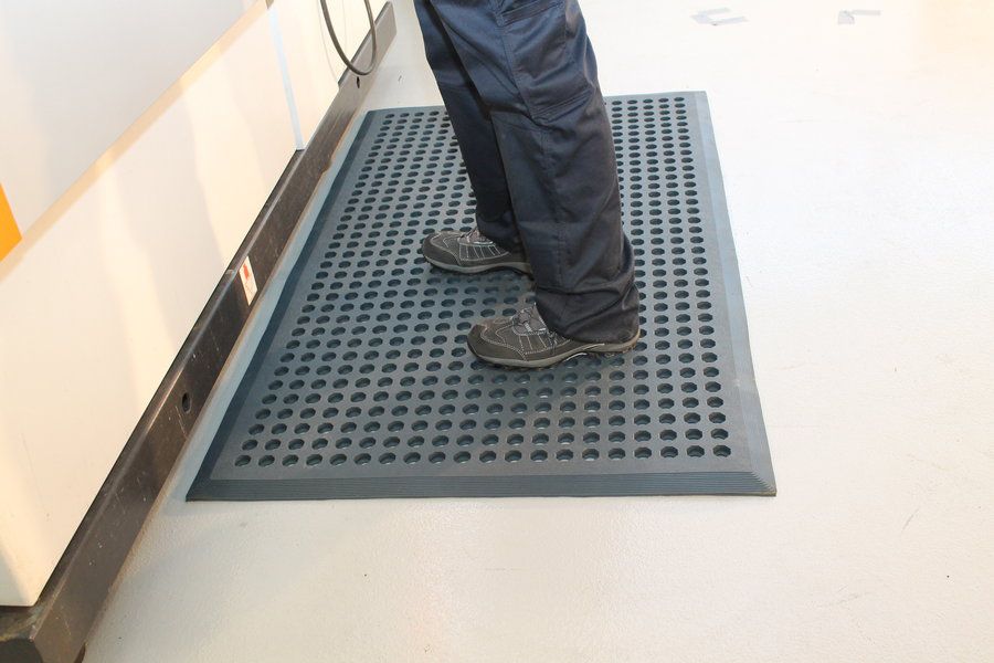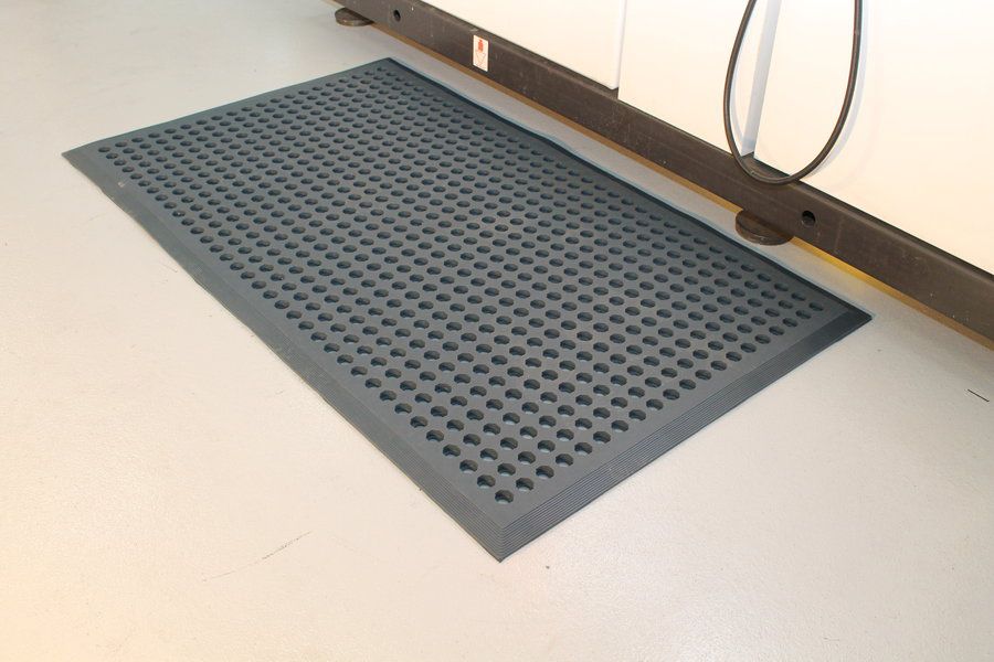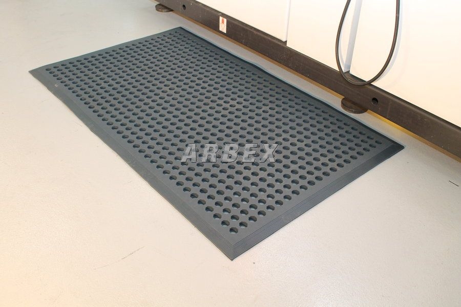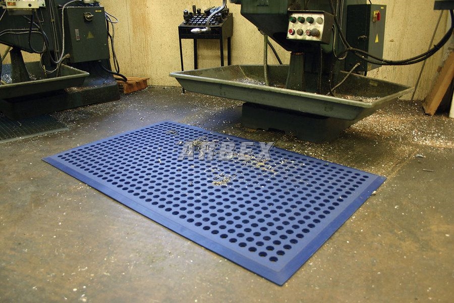 Robustní odolná protiúnavová rohož s lisovanými náběhovými hranami vyrobená z přírodní / nitrilové gumy. Jedinečný design rubové strany drží rohož pevně na místě.