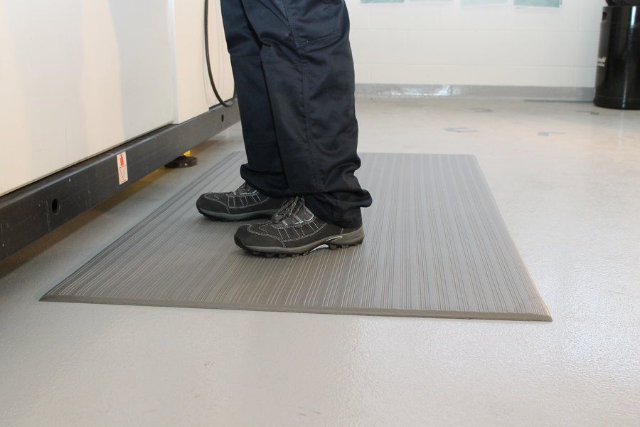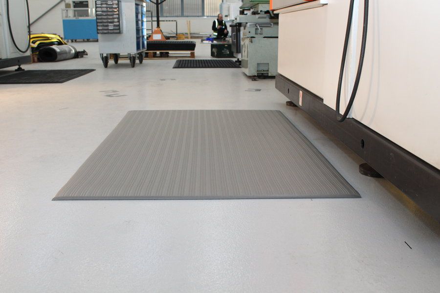 PVC průmyslová protiúnavová rohož s vyvýšeným rýhovaným povrchem eliminujícím riziko uklouznutí.