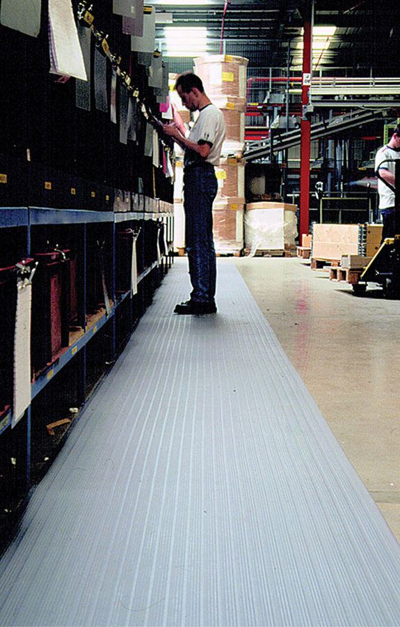 PVC průmyslová protiúnavová rohož s vyvýšeným rýhovaným povrchem eliminujícím riziko uklouznutí.