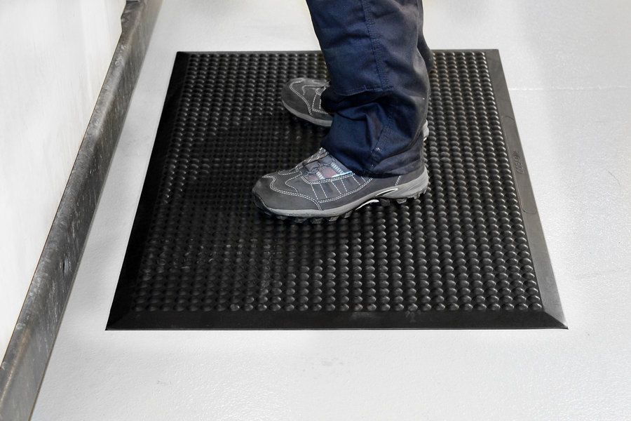 Rohož účinně omezuje zdroj únavy způsobený dlouhým stáním a zvyšuje tak koncentraci pracovníků. Díky svému bublinkovému povrchu stimuluje krevní oběh v chodidlech a následně v celém těle.
