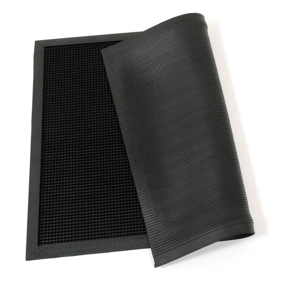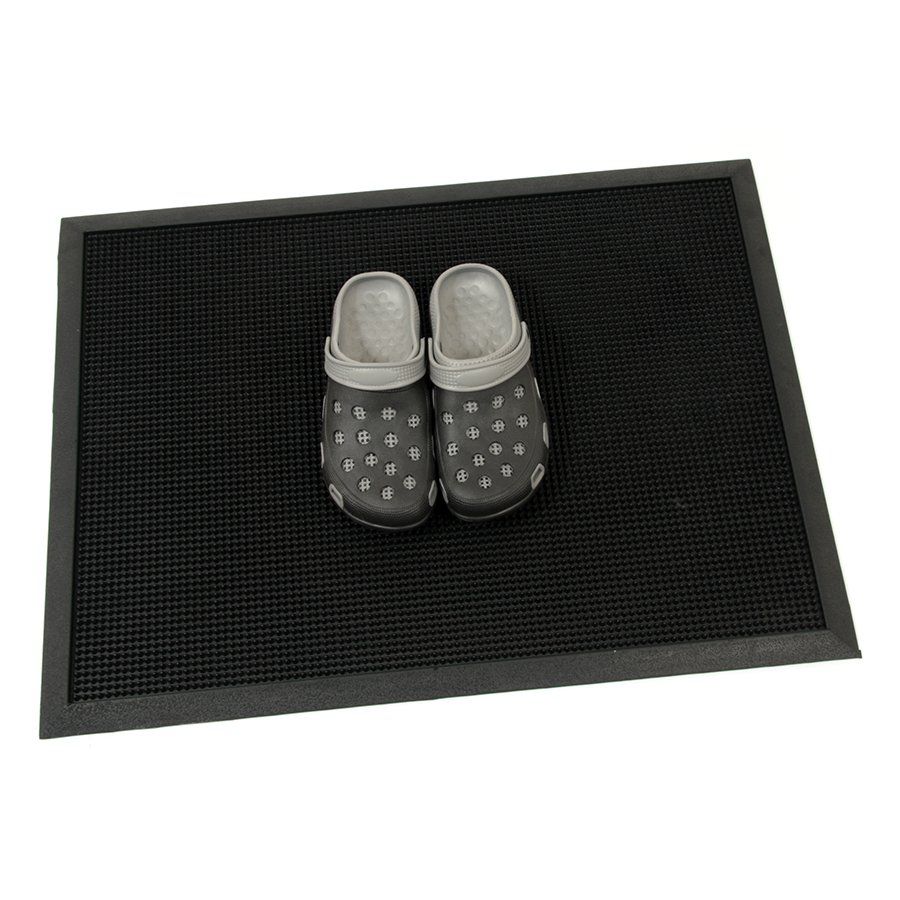Gumová kartáčová rohož je vysoce efektivní řešení pro odstranění hrubých nečistot, jako je bahno, tráva, listí nebo sníh. Díky tisícům pružných gumových hrotů (tzv. kolíčků) funguje rohož jako aktivní kartáč, který vyškrábe nečistoty z hloubky dezénu podrážky. Vyvýšená obvodová hrana navíc zajistí, že voda a rozpuštěný sníh zůstanou uvnitř rohože, což z ní činí i ideální odkapávač na boty.