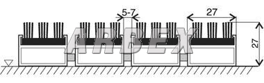 Do hliníkových profilů se pevně fixují kartáčové pásky, které se používají jako čistící zóna k odstranění hrubých nečistot. Kartáčové pásky lze libovolně kombinovat a po opotřebení vyměnit.