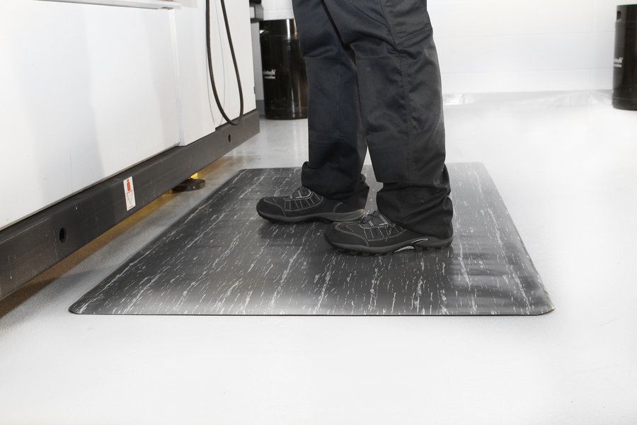 Odolná protiúnavová rohož se stylovou povrchovou úpravou imitace mramoru. Extrémně pohodlná pěnová rubová strana zmírňuje únavu z dlouhého stání. Zkosené hrany rohože zabraňují zakopnutí. Elegantní design nepůsobí rušivě v kombinaci s kachličkami nebo kobercem.
