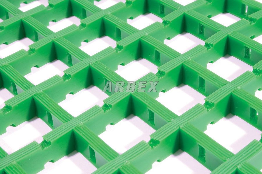 Univerzální průmyslová rohož odolná vůči olejům, ohni i vodě. Rohož je možné použít z obou stran, čímž se prodlužuje její životnost. Mřížkování zamezuje uklouznutí a zachycuje odřezky a třísky. Do jednotlivých mezer je možné vložit vyplňující kostku a rohož tak v určitých místech více zafixovat.