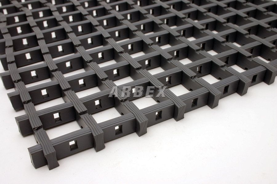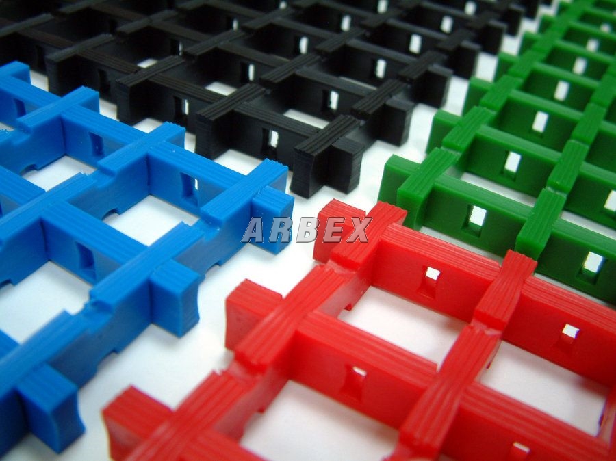 Univerzální průmyslová rohož odolná vůči olejům, ohni i vodě. Rohož je možné použít z obou stran, čímž se prodlužuje její životnost. Mřížkování zamezuje uklouznutí a zachycuje odřezky a třísky. Do jednotlivých mezer je možné vložit vyplňující kostku a rohož tak v určitých místech více zafixovat.