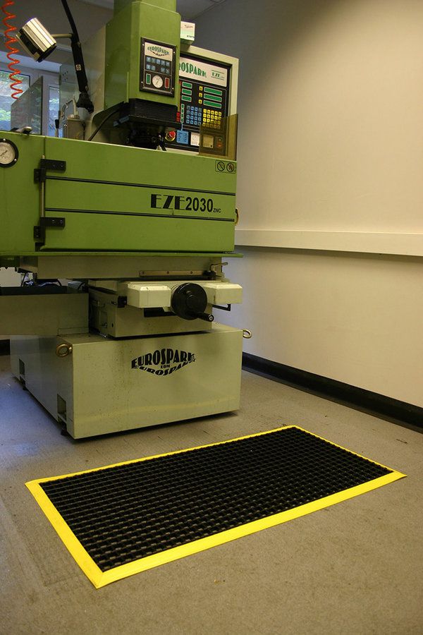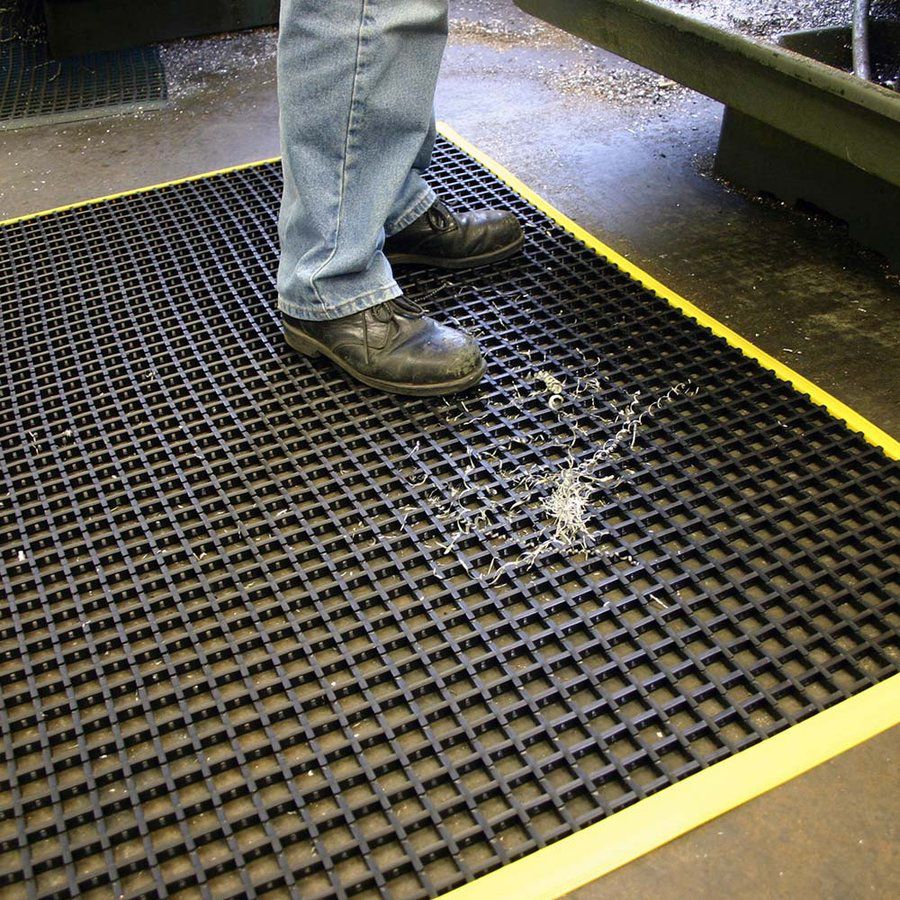 Univerzální rohož olemovaná bezpečnostními nájezdovými hranami. Jemně rýhovaný povrch snižuje riziko uklouznutí v mokrých i mastných prostředích. Díky otvorům do rohože propadávají nečistoty jako odřezky a třísky.
