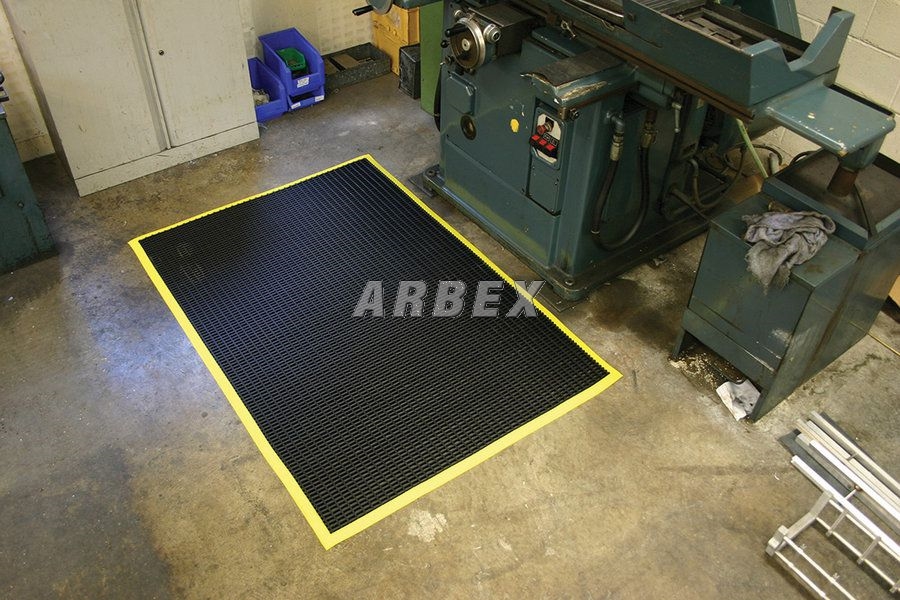 Univerzální rohož olemovaná bezpečnostními nájezdovými hranami. Jemně rýhovaný povrch snižuje riziko uklouznutí v mokrých i mastných prostředích. Díky otvorům do rohože propadávají nečistoty jako odřezky a třísky.