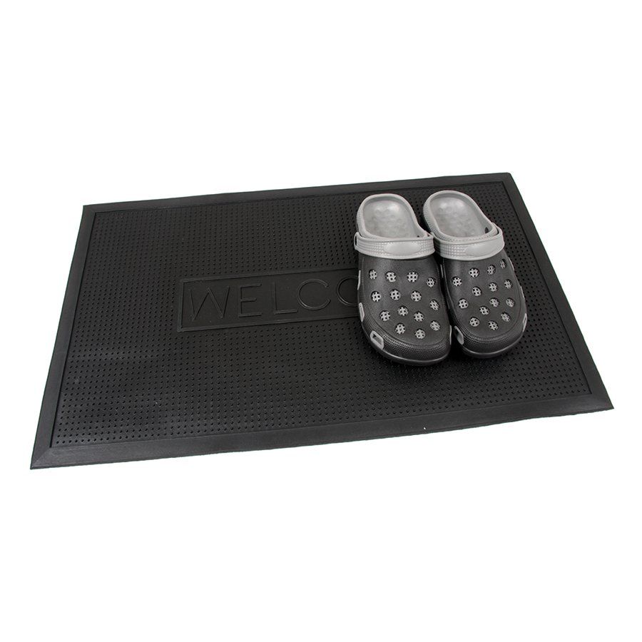 Malá gumová rohožka s kartáčovým efektem doplněná o nápis WELCOME je vhodná pro odstranění drobných nečistot jako je bahno, tráva, zbytky sněhu. Rohožka je nejčastěji před dveřmi bytů, rodinných domů či kanceláří. Díky svému designu často slouží i jako designový doplněk, popřípadě jako odkládací plocha pro mokrou obuv.