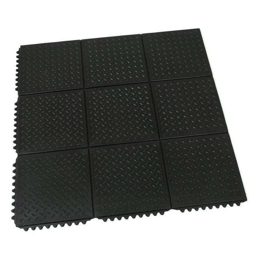 Modulární gumová rohož s povrchovou texturou kotlářský plech je ideální pro sestavení gumové podlahy libovolné velikosti vhodné do posilovny, fitness centra, tělocvičny, sportovního střediska, ale i do garáže či domácí dílny, výroby. Díky svému povrchu má skvělé protiskluzové vlastnosti, absorbuje otřesy způsobené nárazy předmětů či bot a snižuje hlučnost, působí protiúnavově, izoluje od studené podlahy.