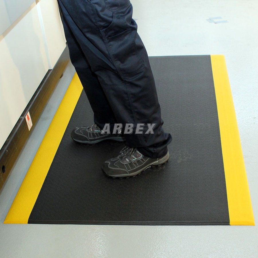 Černo-žlutá vinylová průmyslová protiúnavová protiskluzová rohož je vhodná pro všechny provozy, kde se vyžaduje dlouhodobější stání pracovníků, jako jsou výrobní prostory, montážní linky, balící pracoviště a podobně. Tato průmylsová rohož je vyrobena ze 100% vinylové pěny s uzavřenými buňkami.