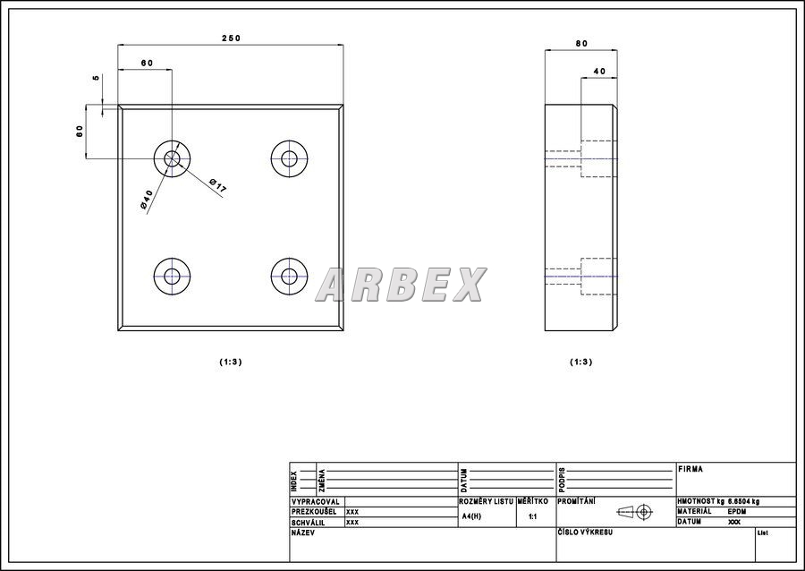 | materiál - guma | gumový, EPDM |