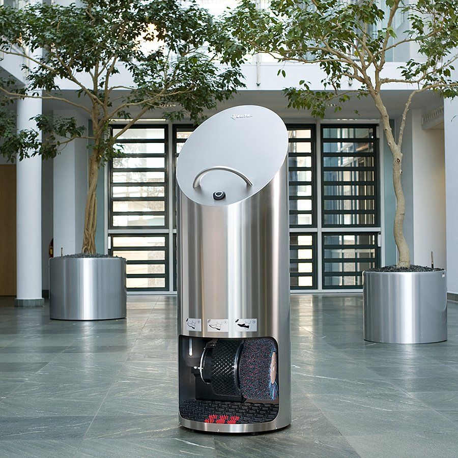 Nerezový čistič obuvi Ellipse plus je určen především pro moderně zařízené prostory. Jedná se o čistič bot v klasickém sloupovém provedení. Může být umístěn u stěny, v rohu místnosti nebo ve volném prostoru.