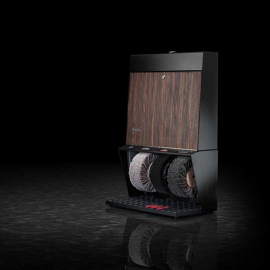 Černo-hnědý (palisandr) čistič obuvi Polifix 3 je určen především pro hotely, penziony a obchodní centra. Jedná se o čistič robustní ocelové konstrukce se třemi kartáči a nádržkou na polituru. Štíhlá konstrukce společně se zajímavými barevnými kombinacemi dává tomuto čističi obuvi neotřelý vzhled, který jej předurčuje všude tam, kde hledáte nenápadný, ale zajímavý vzhled spojený s vysokou účinností čističe na boty. Čistič na boty Polifix 3 je vybaven ručním senzorem s časovačem umístněným na vrchní části čističe.