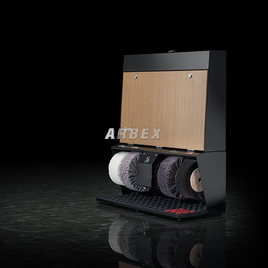 Černo-hnědý (světlý dub) čistič obuvi Polifix 4 je určen především pro hotely, penziony a obchodní centra. Jedná se o velmi výkonný čistič se čtyřmi kartáči a nádržkou na polituru. Čistič na boty Polifix 4 je vybaven ručním senzorem s časovačem umístněným na vrchní části čističe.