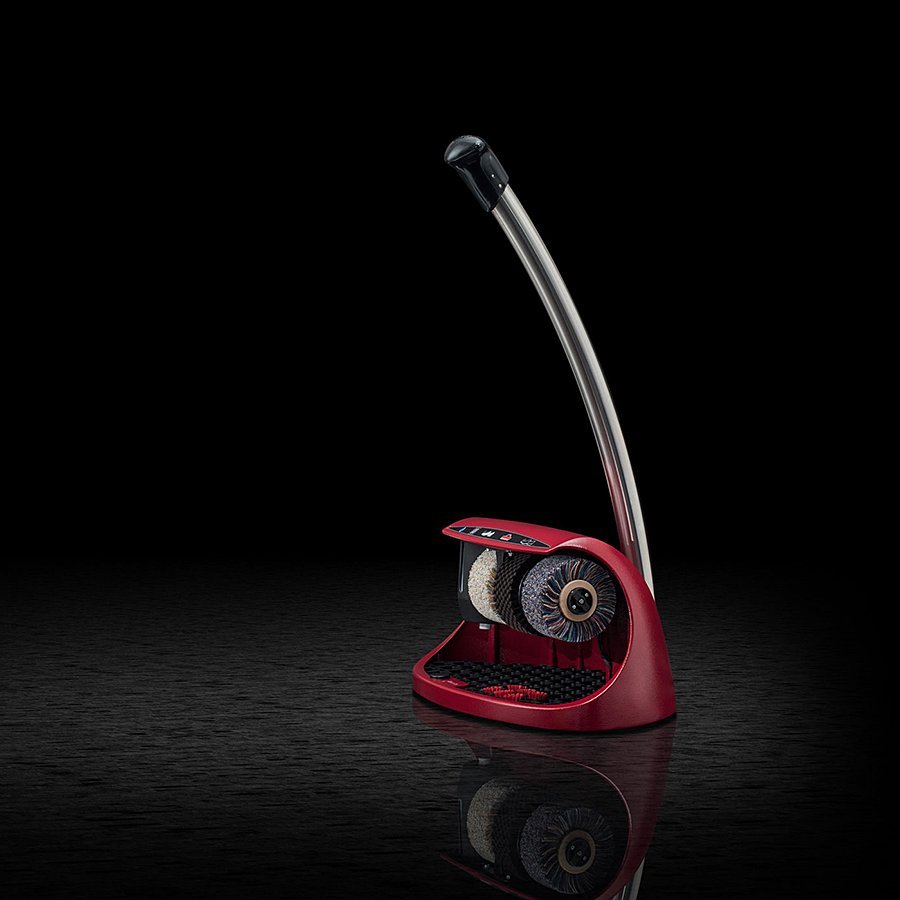 Čerevný (bordeaux) čistič obuvi Cosmo plus je elegantní a kompaktní čistič obuvi, který najde uplatnění především v menších hotelích, penzionech a v místech, kde není tak rušný pohyb osob, jako ve velkých komplexech a budovách. Jedná se o kompaktní čistič se třemi kartáči a nádržkou na polituru. Čistič na boty Cosmo plus je vybaven ergonomickou rukojetí v jejímž zakončení je integrován ruční spínač s časovačem.