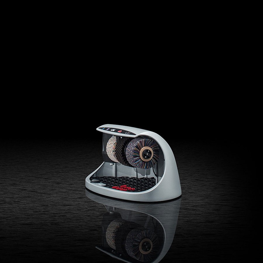 Čistič obuvi Cosmo má jeden čistící, dva leštící kartáče a nádržku na polituru. Jedná se elegantní a kompaktní čistič bot, jehož tělo je vyrobeno z hliníku a je dodáván v několika barevných variantách. Okartáčovaná nečistota padá do vyjímatelné gumové rohože, která je osazena kartáčky na čištění podrážek bot.