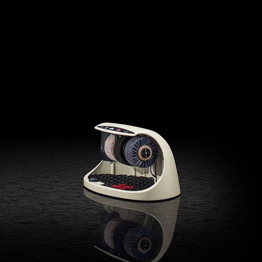 Čistič obuvi Cosmo má jeden čistící, dva leštící kartáče a nádržku na polituru. Jedná se elegantní a kompaktní čistič bot, jehož tělo je vyrobeno z hliníku a je dodáván v několika barevných variantách. Okartáčovaná nečistota padá do vyjímatelné gumové rohože, která je osazena kartáčky na čištění podrážek bot.