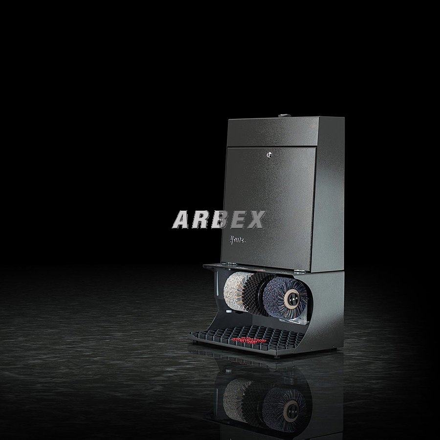 Grafitový čistič obuvi Ronda 30 nabízí neotřelý design, díky kterému se skvěle hodí do menších hotelů, penzionů a kancelářských prostor. Jedná se o výkonný čistič menších rozměrů se třemi kartáči a nádržkou na polituru. Čistič na boty Ronda 30 je vybaven ručním senzorem s časovačem umístěným na horním víku čističe.