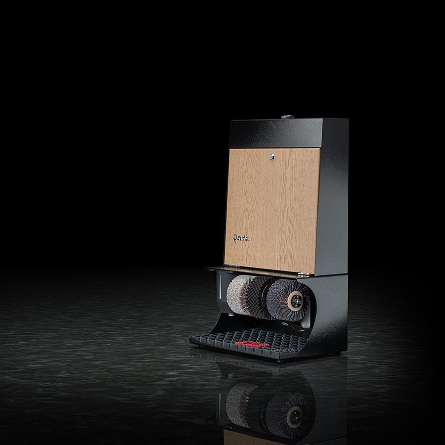 Černo-hnědý (světlý dub) čistič obuvi Ronda 30 nabízí neotřelý design, díky kterému se skvěle hodí do menších hotelů, penzionů a kancelářských prostor. Jedná se o výkonný čistič menších rozměrů se třemi kartáči a nádržkou na polituru. Čistič na boty Ronda 30 je vybaven ručním senzorem s časovačem umístěným na horním víku čističe.