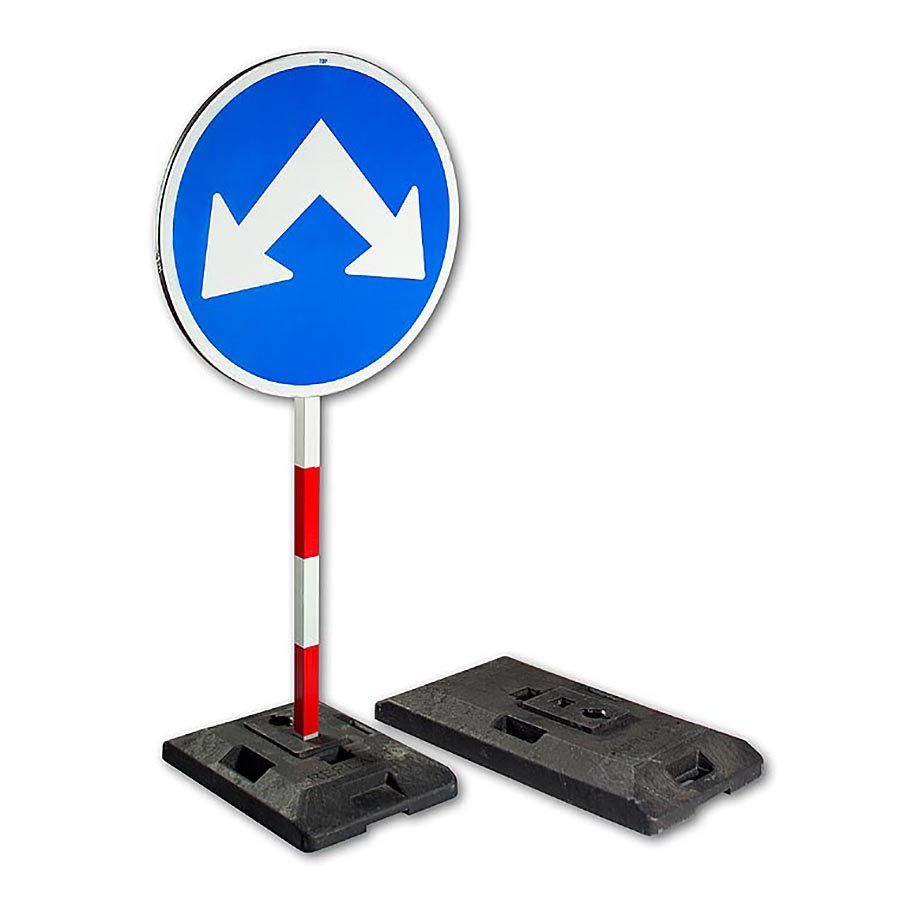Plastové podstavce pod dopravní značení CZ 1 slouží pro ustavování směrových tabulí nebo jiných signalizačních zařízení na pozemních komunikacích, při opravách silnic a dálnic. Tyto podstavce se také využívají pro dočasné svislé dopravní značení nebo pro mobilní zábrany, informační značky a mobilní ploty při pořádání různých akcí a na stavbách.
