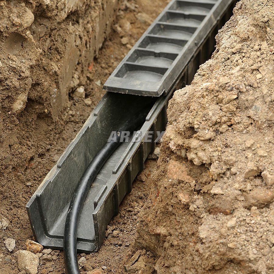 Černá plastová kabelová chránička je určená k ochraně zemních vysokonapěťových elektrických kabelů, sdělovacích a telekomunikačních kabelů, hadic a trubek. Kabelové chráničky jsou vyrobeny z recyklovaného plastu. Jedná se o vysoce vysoce odolný a stálý materiál předurčený pro uložení do země.