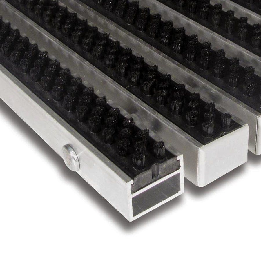 Do hliníkových profilů se pevně fixují kartáčové pásky, které se používají jako čistící zóna k odstranění hrubých nečistot. Kartáčové pásky lze libovolně kombinovat a po opotřebení vyměnit.