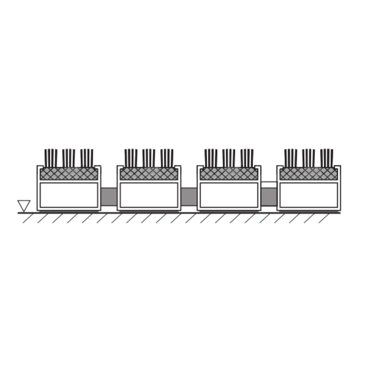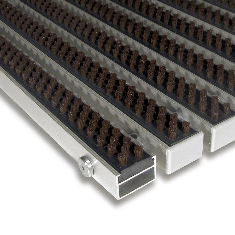 Do hliníkových profilů se pevně fixují kartáčové pásky, které se používají jako čistící zóna k odstranění hrubých nečistot. Kartáčové pásky lze libovolně kombinovat a po opotřebení vyměnit.
