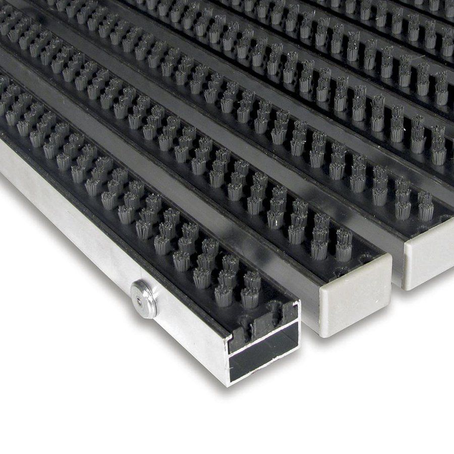 Do hliníkových profilů se pevně fixují kartáčové pásky, které se používají jako čistící zóna k odstranění hrubých nečistot. Kartáčové pásky lze libovolně kombinovat a po opotřebení vyměnit.