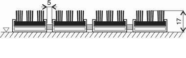Do hliníkových profilů se pevně fixují kartáčové pásky, které se používají jako čistící zóna k odstranění hrubých nečistot. Kartáčové pásky lze libovolně kombinovat a po opotřebení vyměnit.