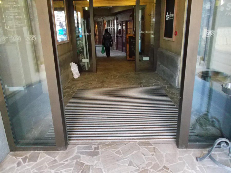 Délka se vždy přizpůsobuje šířce hliníkového pásku - 60 mm. V případě libovolné délky, se používá gumový koncový profil, který zaručí přesnou délku rohože.