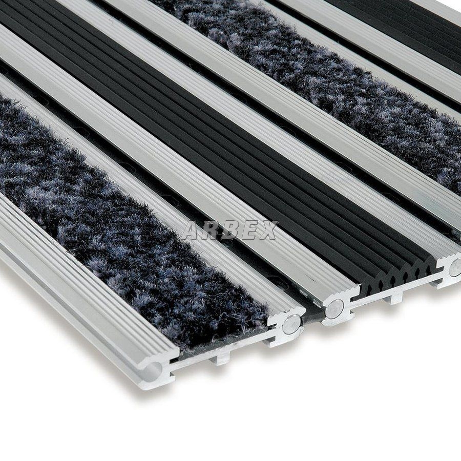Délka se vždy přizpůsobuje šířce hliníkového pásku - 60 mm. V případě libovolné délky, se používá gumový koncový profil, který zaručí přesnou délku rohože.