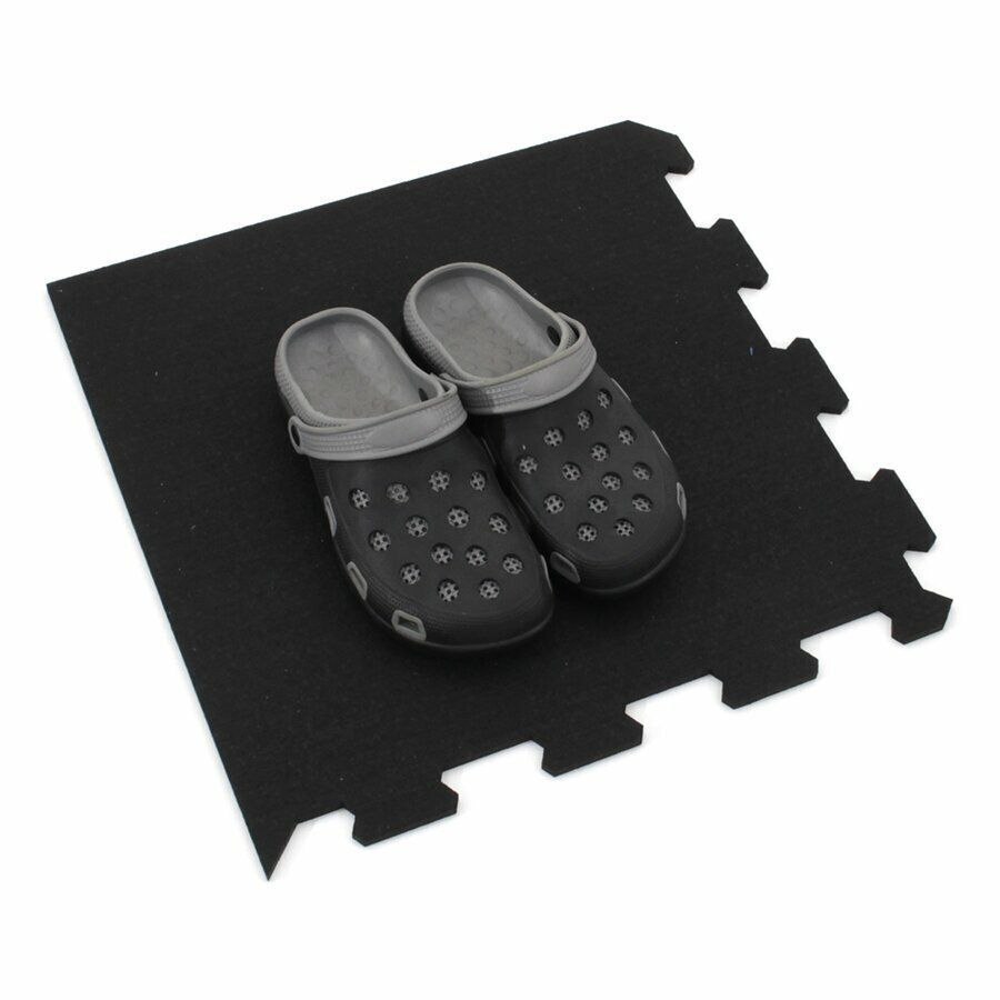 Gumová dlažba (modulová podlaha) FLOMA FitFlo SF1050 se systémem puzzle zámků je ideální podlahou do domácích posiloven a fitness (profesionální fitness centra obvykle volí výšku 1,6 cm). Velice dobře absorbuje nárazy, pády při cvičení, zmírňují dopady činek a cvičícího nářadí. Nespornou výhodou materiálu je také šetrnost ke kloubnímu aparátu cvičence. Tato gumová podlahovina se dá použít jako celoplošná podlaha do domacích fitness, jako pochůzné plochy v posilovnách, jako podložky pod cvičící stroje, odkládací plochy pro činky a další.