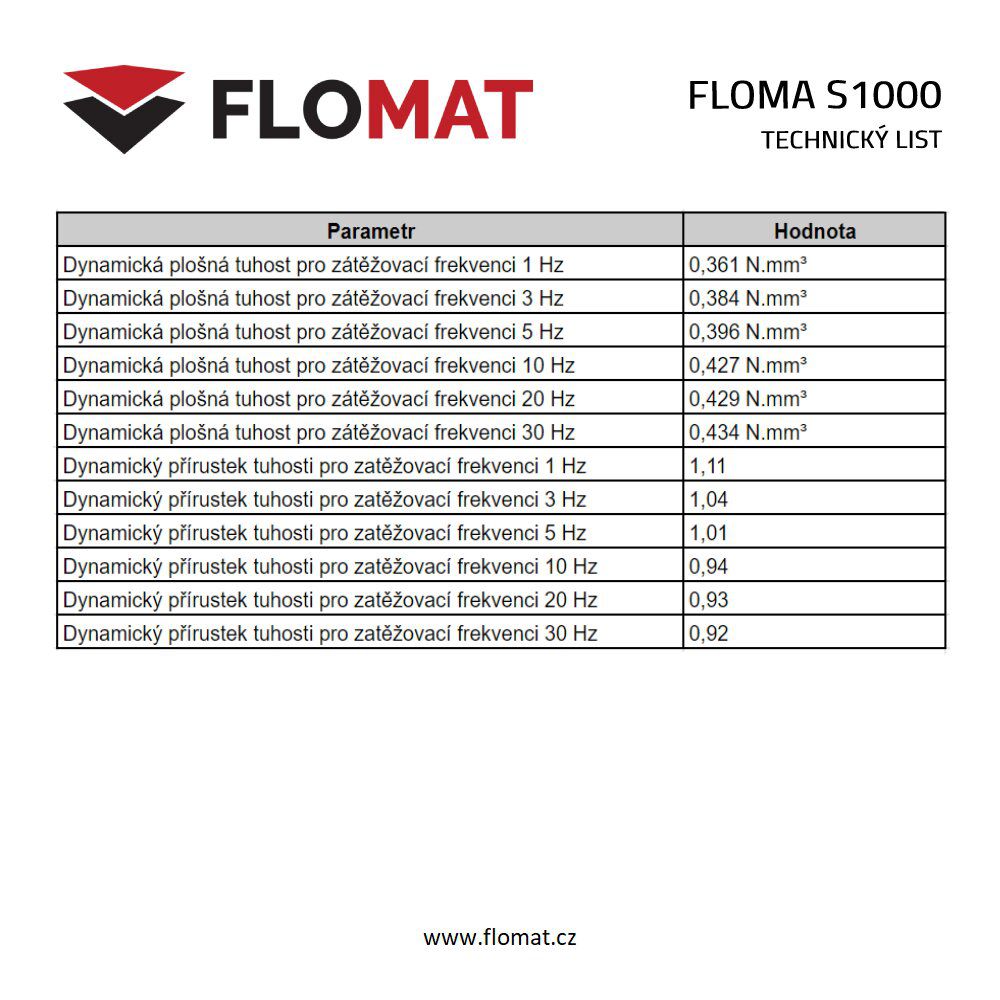 Antivibrační tlumící rohož FLOMA S1000 je elastomerická deska vyrobena ze směsi pryžového granulátu SBR a polyuretanového pojiva. Díky tomuto složení perfektně slouží jako ochrana proti chvění, vibracím a také jako izolace budov, vozovek, pilířů a nosníků.