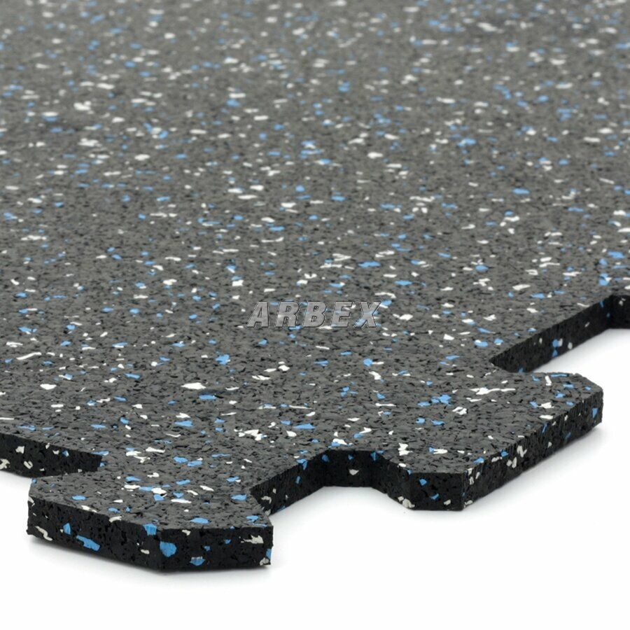 Gumová dlažba (modulová podlaha) FLOMA FitFlo SF1050 s příměsí 5+5% EPDM barevného granulátu v provedení 5% bílá + 5% modrá je ideální podlahou do domácích posiloven a fitness (profesionální fitness centra obvykle volí výšku 1,6 cm). Velice dobře absorbuje nárazy, pády při cvičení, zmírňují dopady činek a cvičícího nářadí. Nespornou výhodou materiálu je také šetrnost ke kloubnímu aparátu cvičence. Tato gumová podlahovina se dá použít jako celoplošná podlaha do domacích fitness, jako pochůzné plochy v posilovnách, jako podložky pod cvičící stroje, odkládací plochy pro činky a další.