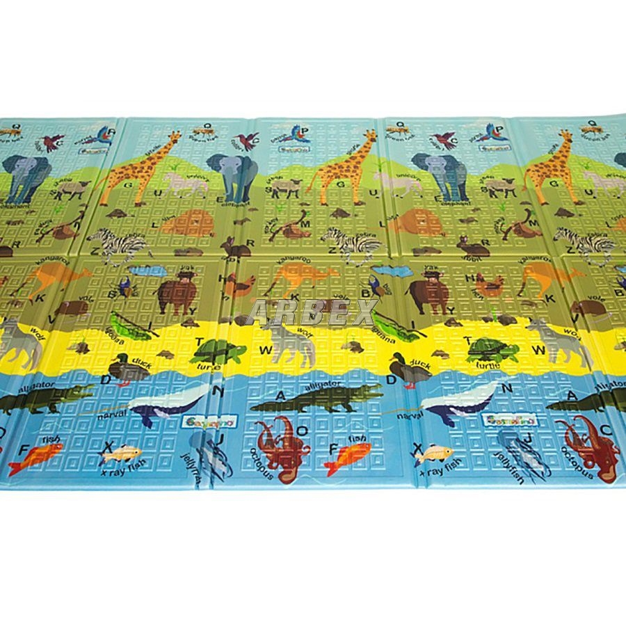 Pěnová hrací podložka ABC Animals je opravdu veliká, rozměr podložky je 200 x 140 x 1 cm, přičemž právě 10 mm tloušťka podložky zajistí maximální pohodlí Vašeho dítěte. I když má podložka velký rozměr, velmi snadno se rozloží a posléze poskládá. Je velmi lehká a pro přenos zabalená v pěkné plátěné tašce.